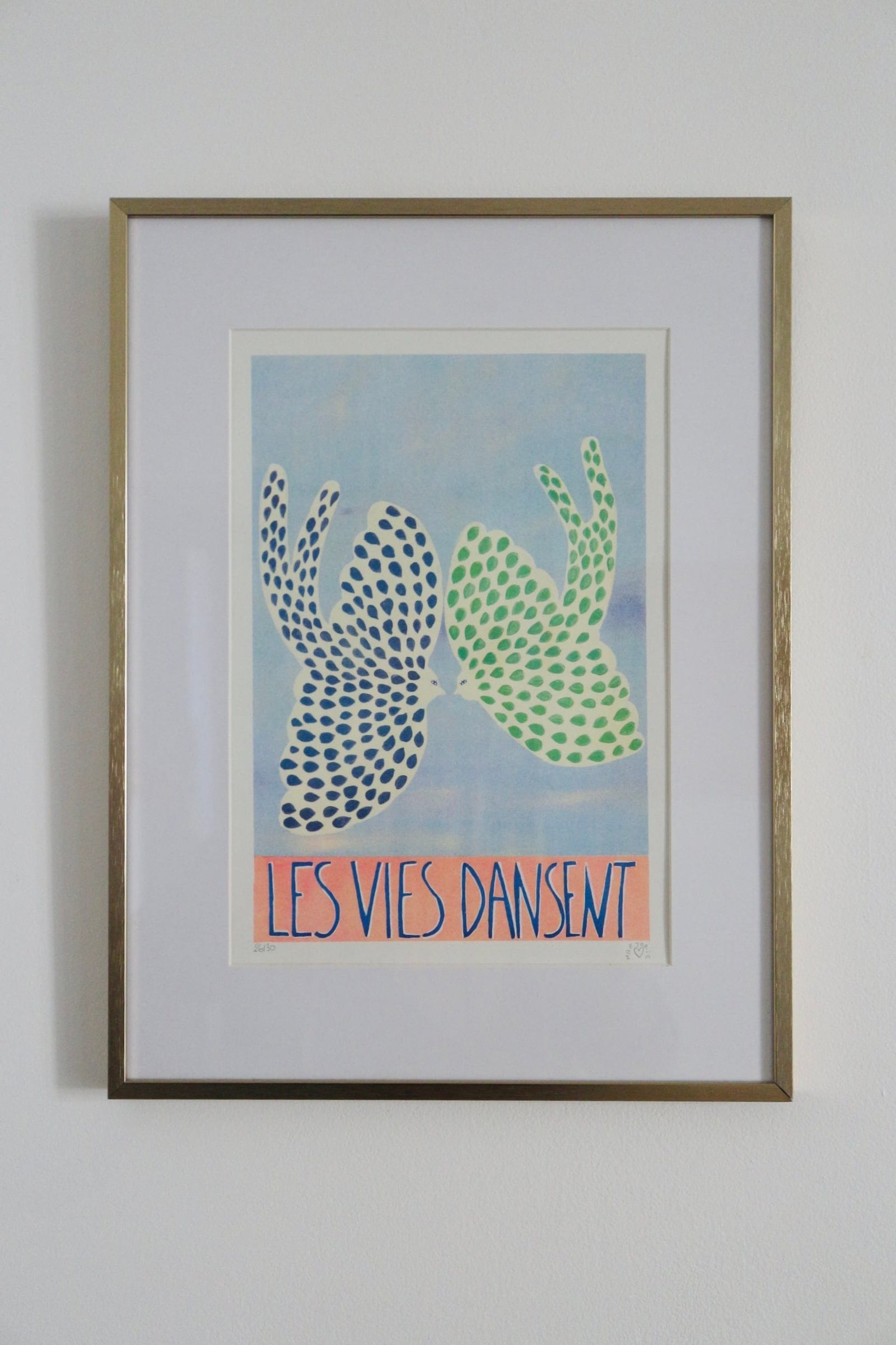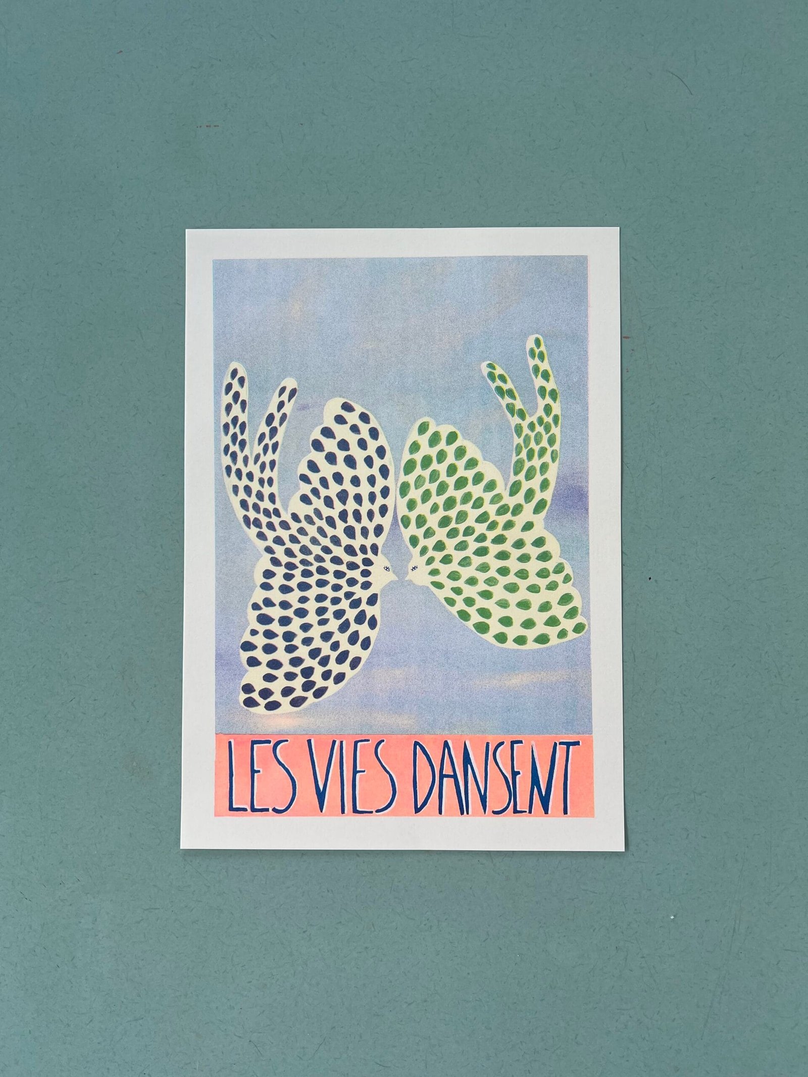 Risographie LES VIES DANSENT (format A4) non encadrée. Des éditions limitées en Risographie inspirées par la délicatesse, la lumière des ciels et l’harmonie des couleurs. Mes peintures originales sont imprimées en Risographie par l’atelier Leona à Toulouse. Chaque tirage est limité à 30 exemplaires, numéroté et signé, garantissant son authenticité. Papier Munken Polar Rough 150g.