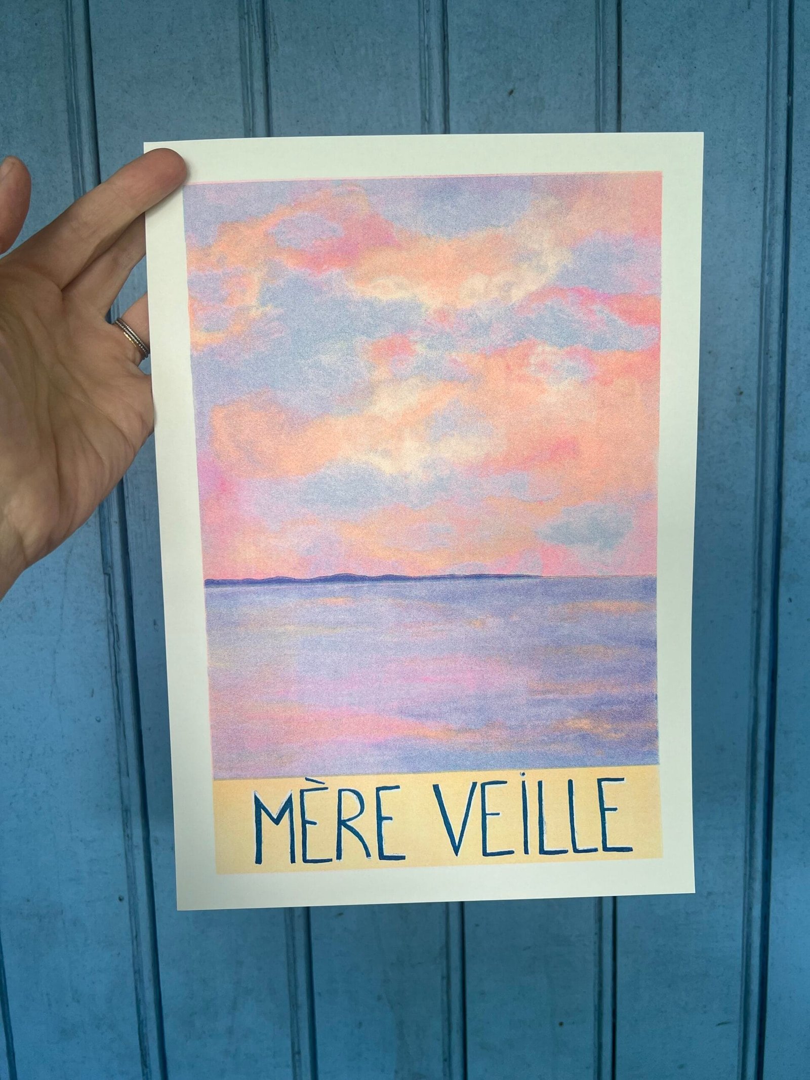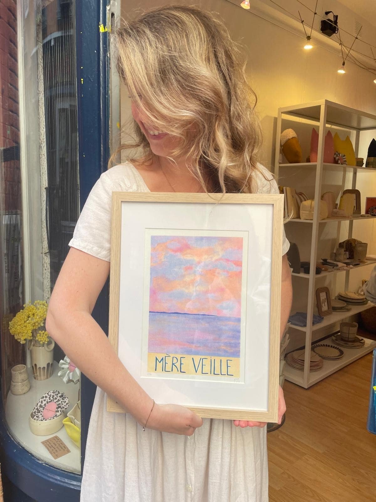 Certaines créations existent également en reproductions. Celles-ci sont réalisées en risographie ou imprimées sur papier d’art, afin de préserver au mieux les couleurs et les textures de l’œuvre d’origine.